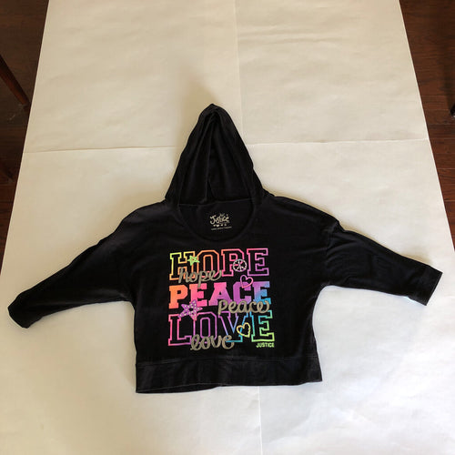 "hope, peace, love" hooded shirt
