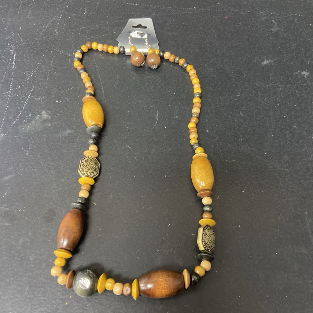 Wooden Bead Necklace & Earrings Set (NEW)
