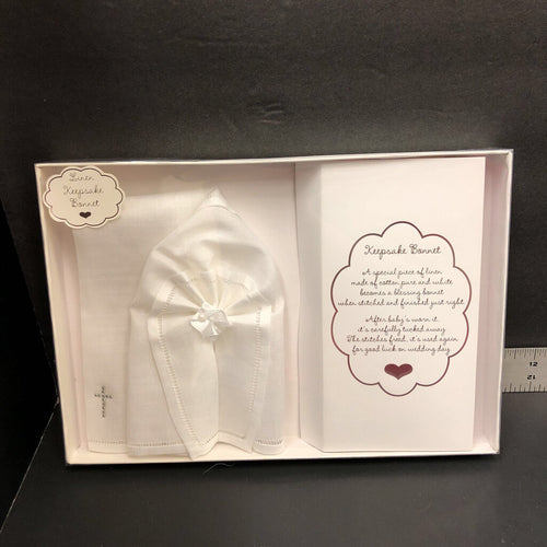 Bless Linen Keepsake Bonnet w/crossKEEPSAKE:Size:
