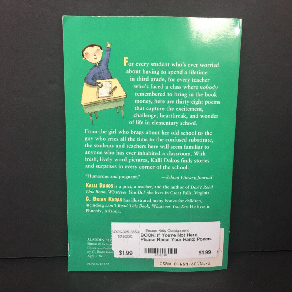 If You're Not Here, Please Raise Your Hand: Poems About School (Kalli Dakos) (Elementary School) -poetry paperback