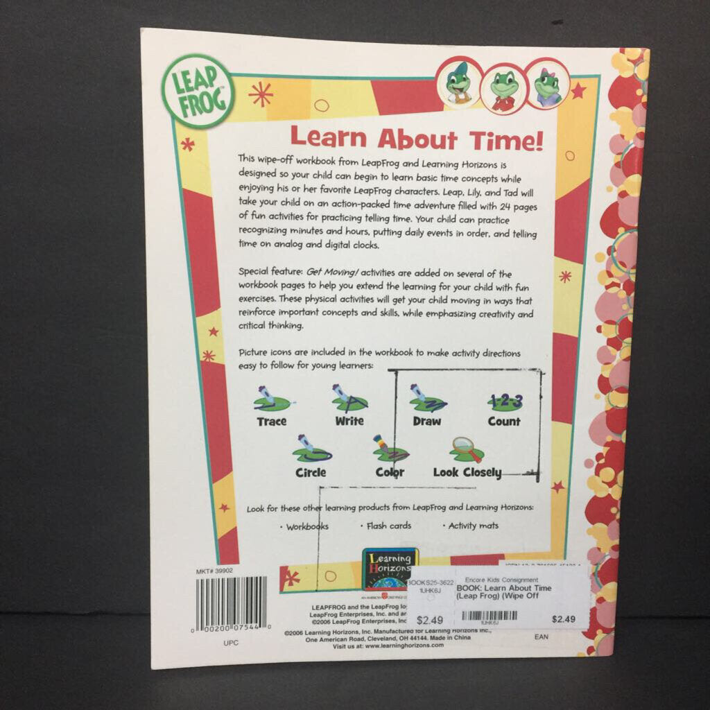 Learn About Time (Leap Frog) (Wipe Off Workbook) (Math) -workbook paperback