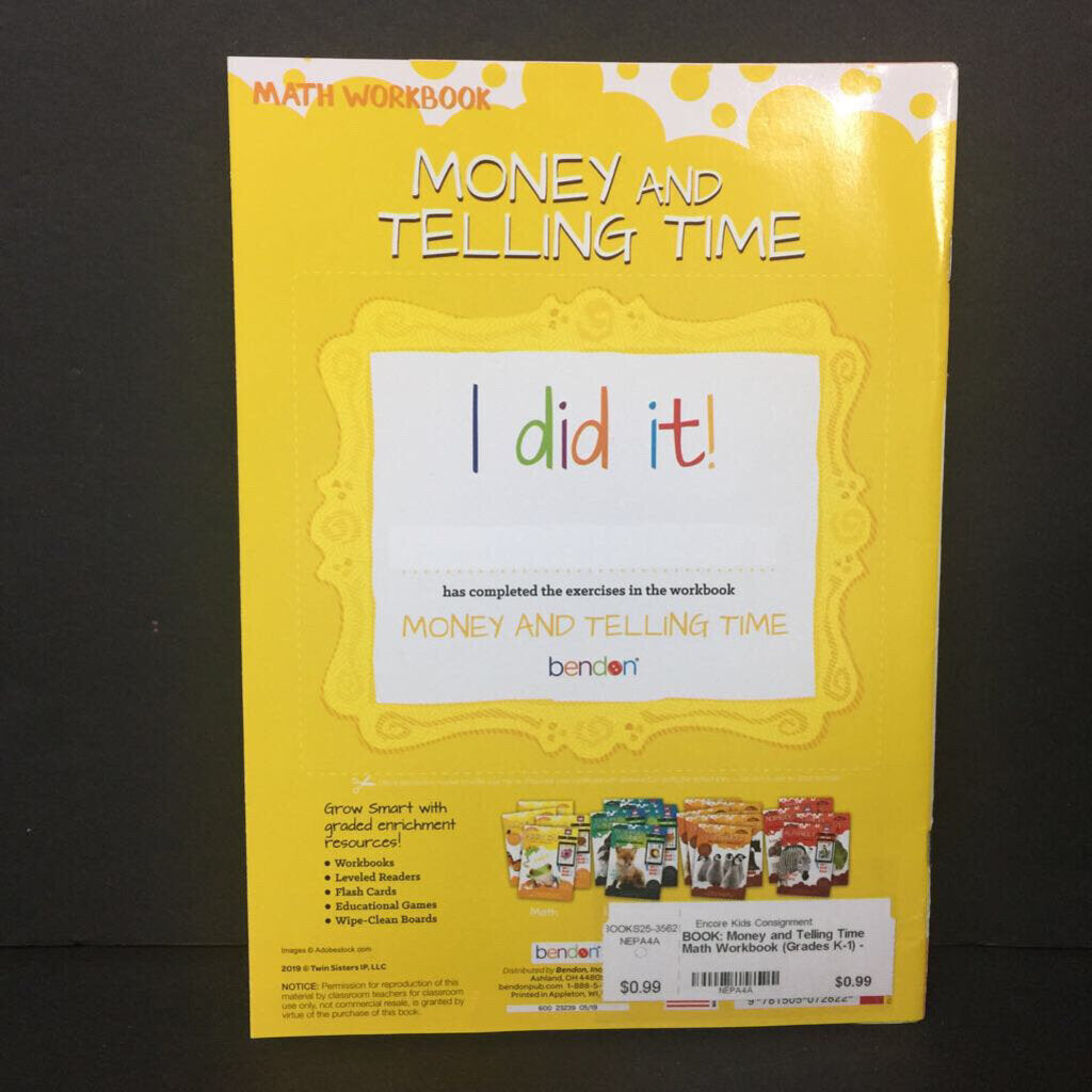 Money and Telling Time Math Workbook (Grades K-1) -workbook paperback