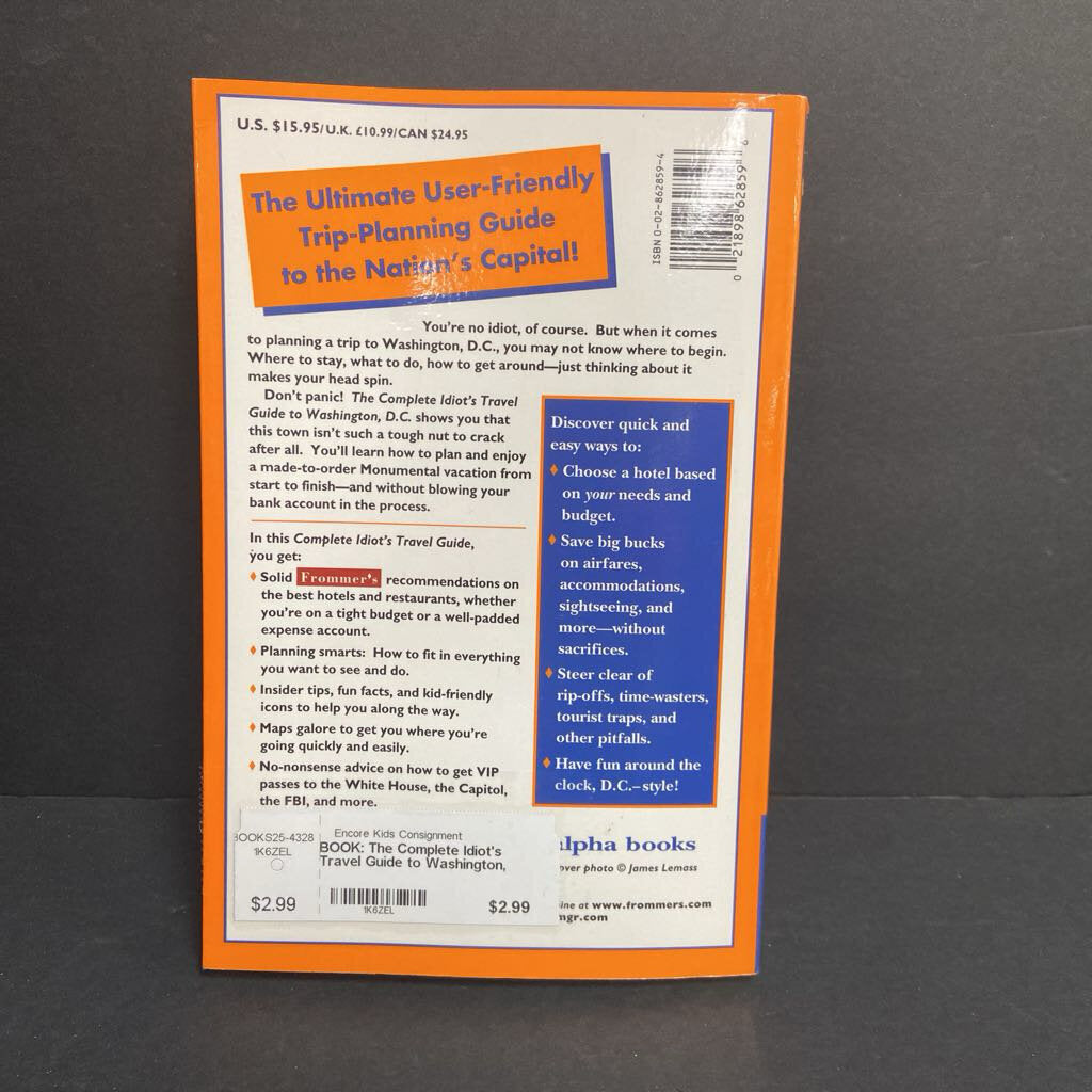 The Complete Idiot's Travel Guide to Washington, D.C. (Beth Rubin) (Notable Place) -educational paperback
