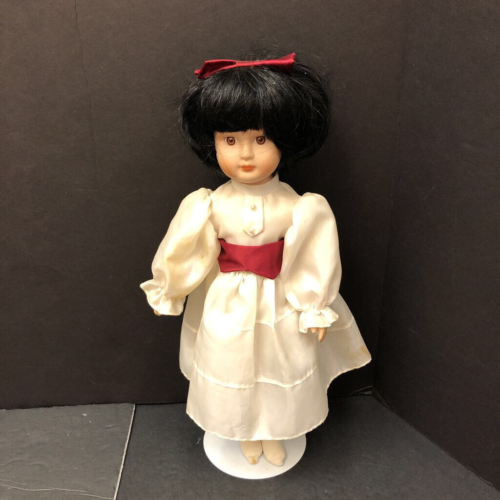 Porcelain Doll in Dress & Hairbow w/Stand