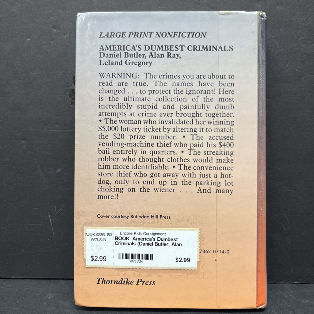 America's Dumbest Criminals (Daniel Butler, Alan Ray, Leland Gregory) (Notable Person) -educational chapter hardcover