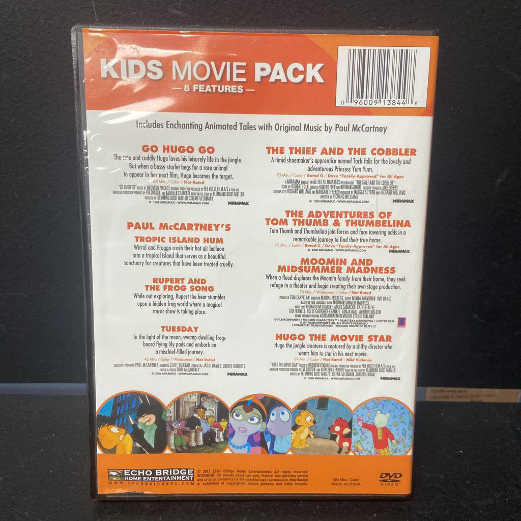 Includes: Go Hugo Go, Paul McCartnery's Tropic Island Hum, Rupert and the Frog Song, Tuesday, The Thief and The Cobbler, The Adventures of Tom Thumb & Thumbelina, Moomin and Midsummer Madness, and Hugo: The Movie Star