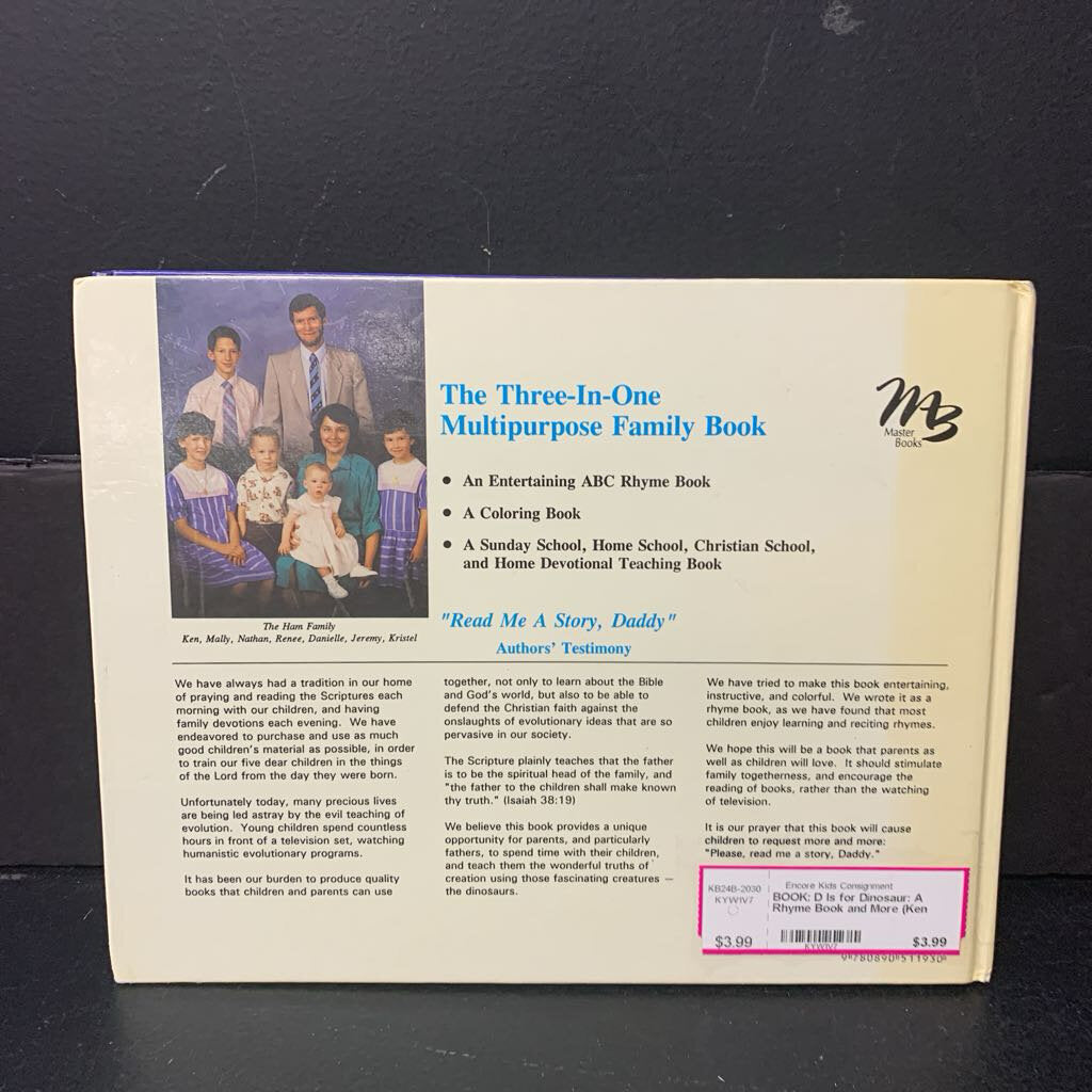 D Is for Dinosaur: A Rhyme Book and More (Ken Ham & Mally Ham) -religion activity hardcover