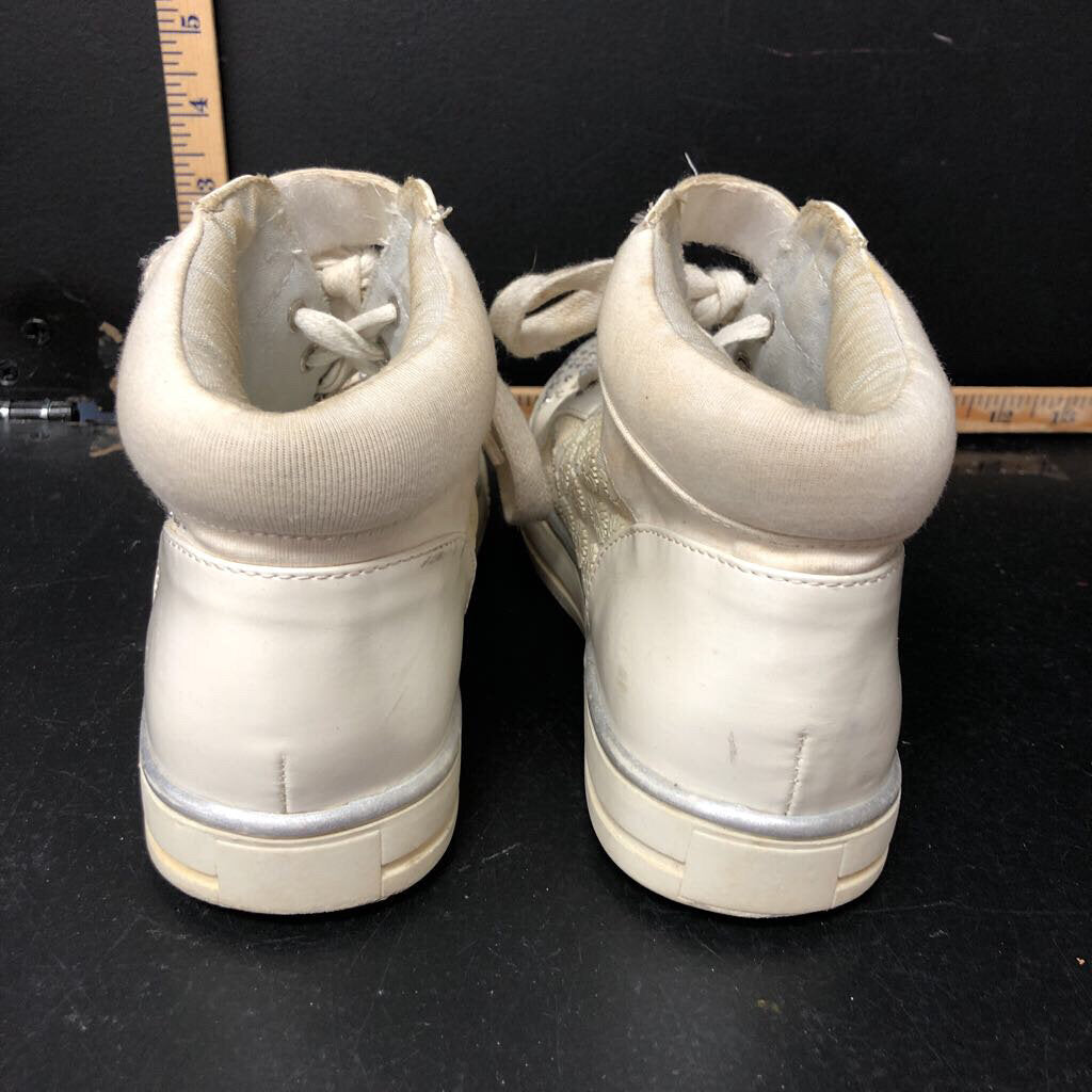 Girls bling tie up sneakers w/daisies