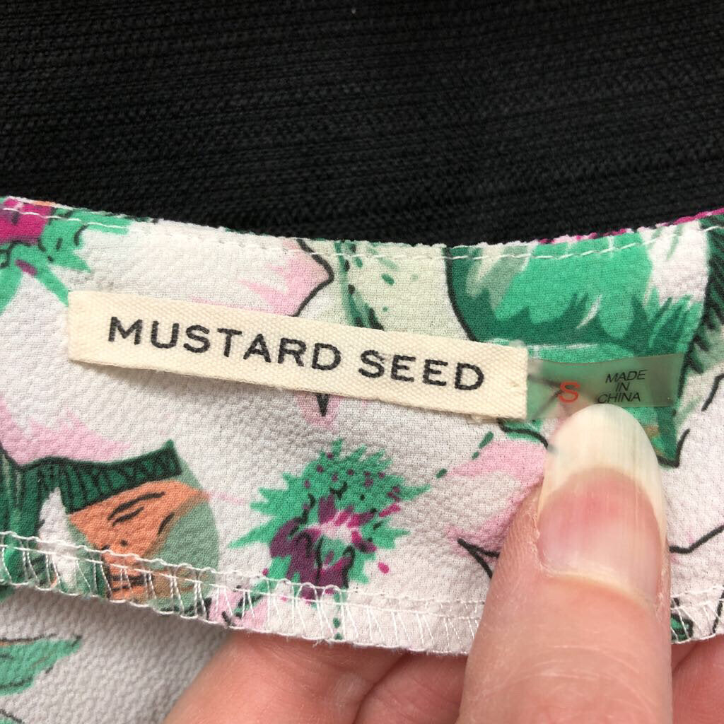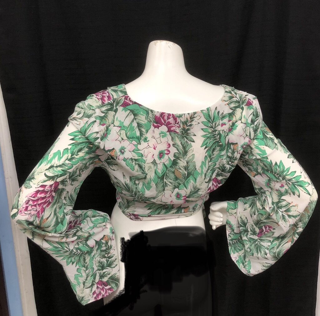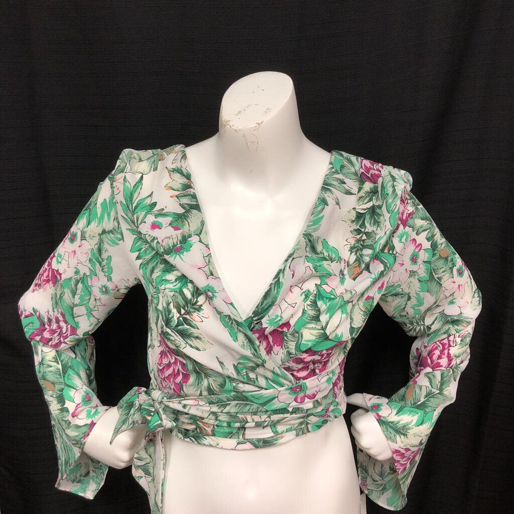 Floral Tie Front Bell Sleeve Wrap Crop Top (Mustard Seed)